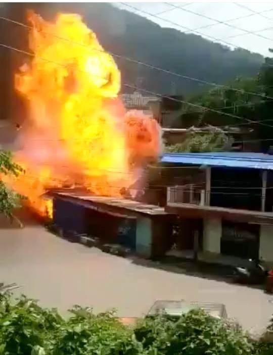 While the fire was burning, people witnessed another blast from the same place though it could be a LPG gas cylinder which caused the damage.