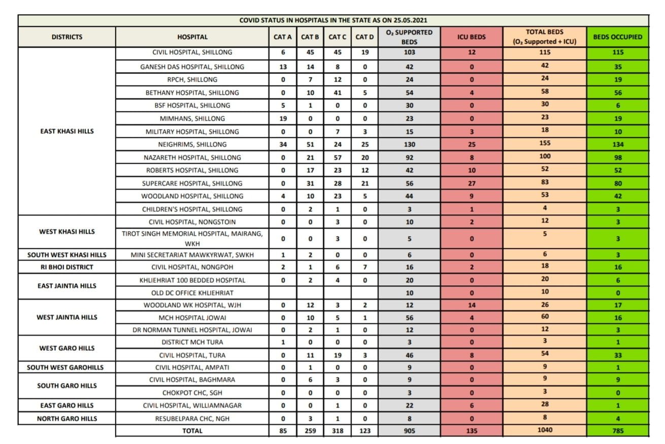 In Meghalaya as a whole, 75 percent of Covid beds are occupied. Only Baghmara Civil Hospital has filled their Covid beds to capacity, with all nine there currently occupied.