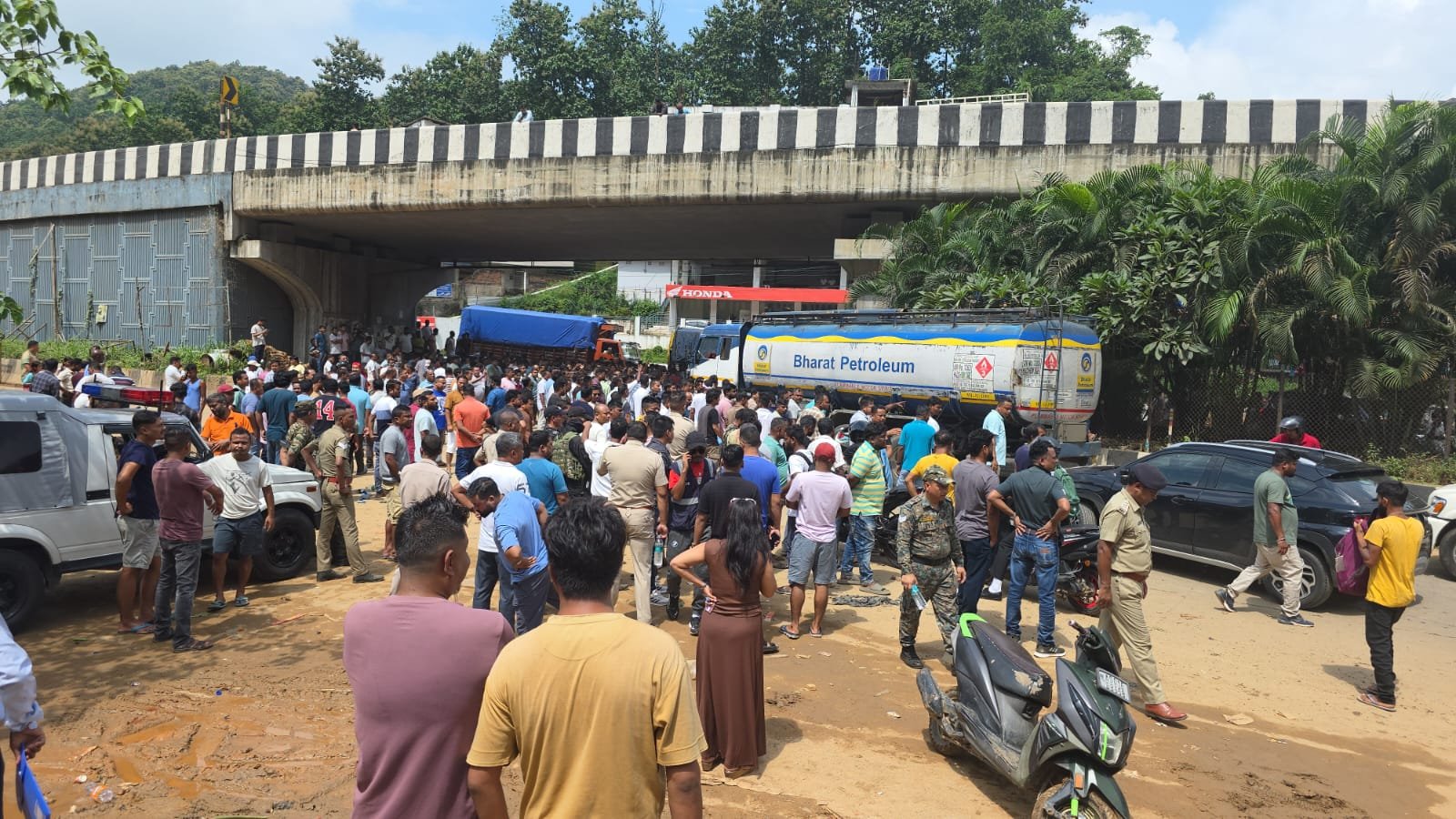 Meanwhile, in Byrnihat, which lies on the border between Assam and Meghalaya along National Highway 6, Assam taxi drivers blocked tourist vehicles as well as private cars from entering Assam, even holding up a vehicle transporting Rakkam A Sangma MLA. Officials from Ri-Bhoi, including magistrates and police personnel, rushed to the spot to bring the situation under control and to hold discussions with the leaders of the taxi drivers.