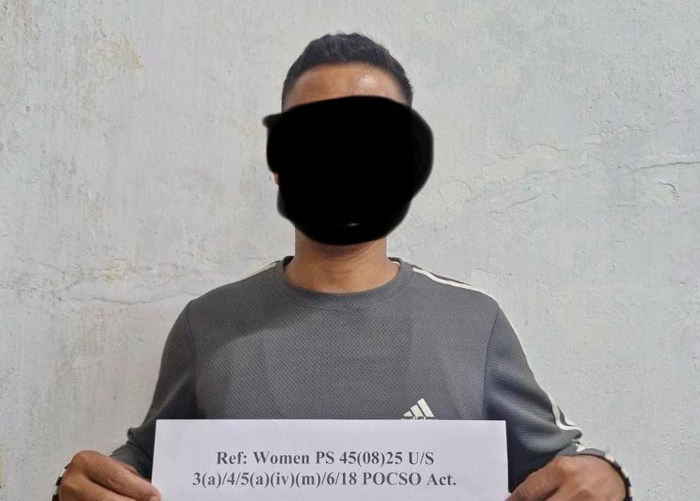 Police said he was brought to Nongpoh the same day. A case was registered Under Section 3(a)/4/5(a)(iv)(m)/6/18 POCSO Act.