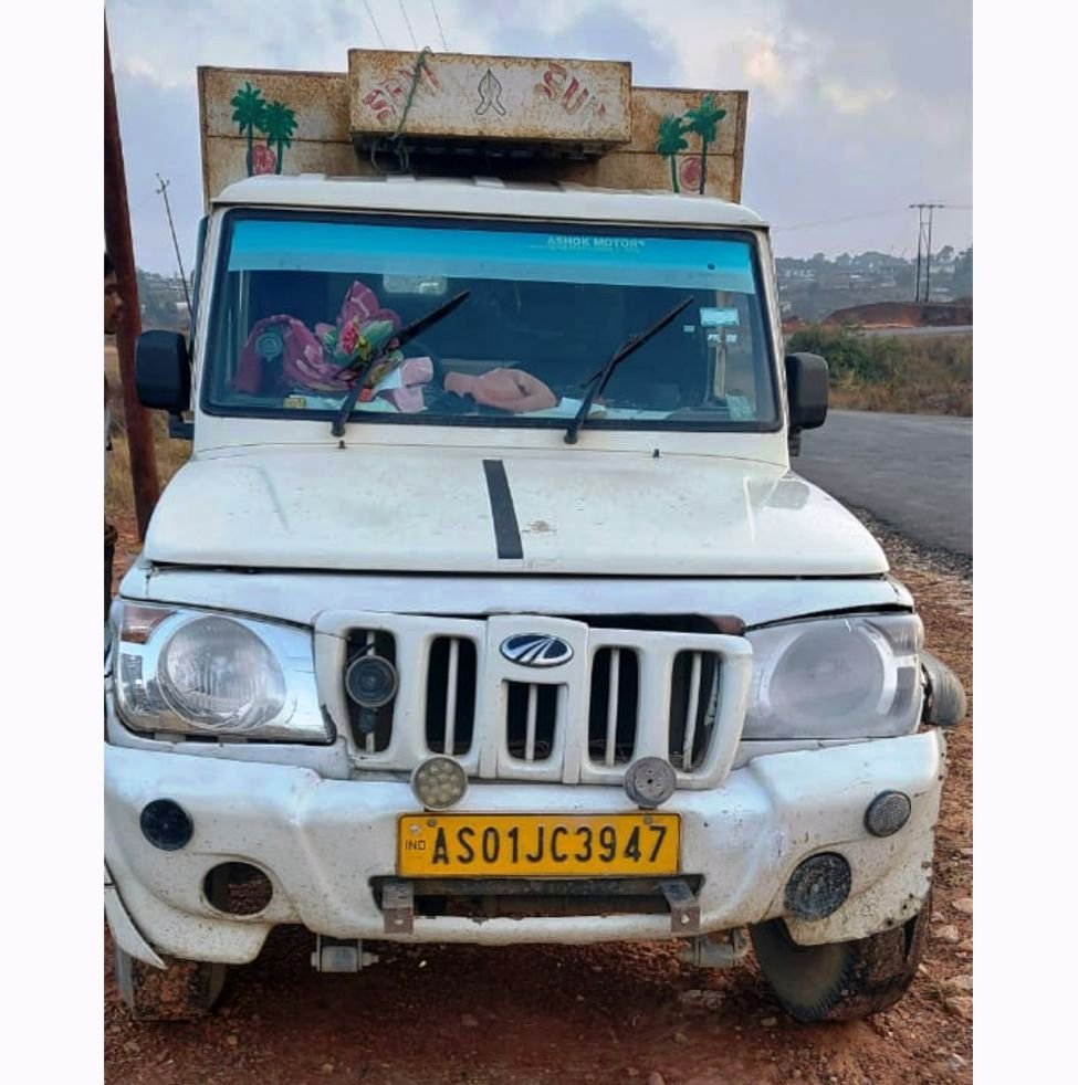 Police suspects that the person, identified as Nimai Datta was murdered and then burnt by unknown persons. His body was recovered from Moowakhu while the pickup truck with blood stains bearing registration number AS-01-JC-3947 was recovered from Ladrymbai by-pass.
