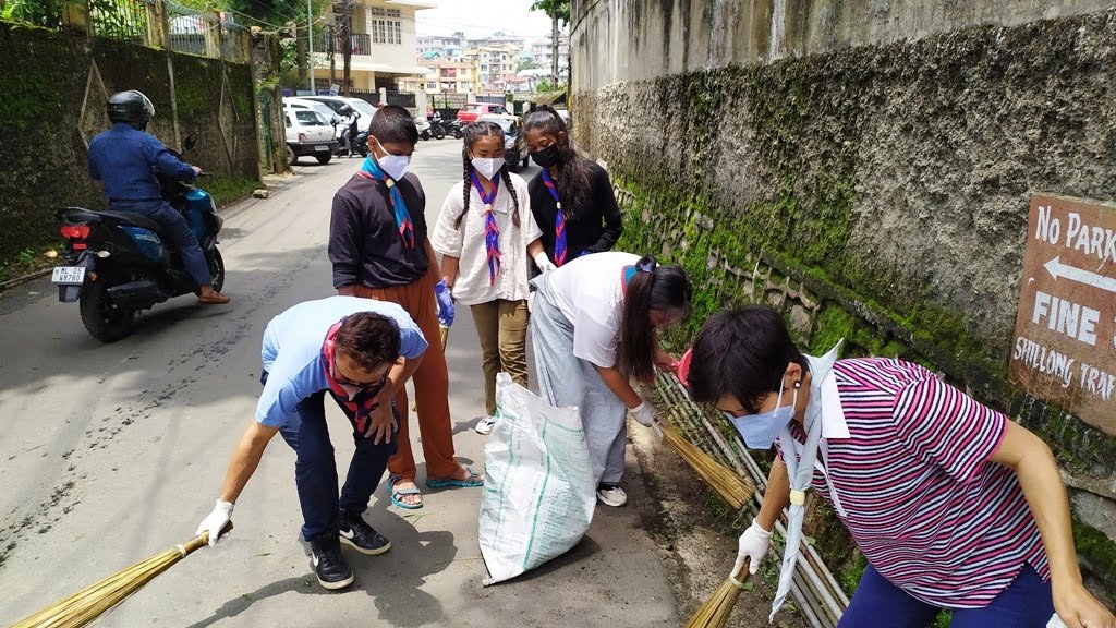 The cleaning drive was conducted from Bah (L) Thranghok Rangad Point, Laban, Meghalaya Bharat Scouts and Guides-SHOO Pine Mount School leading to Crinoline Swimming Pool and Seven Set HS School lane.