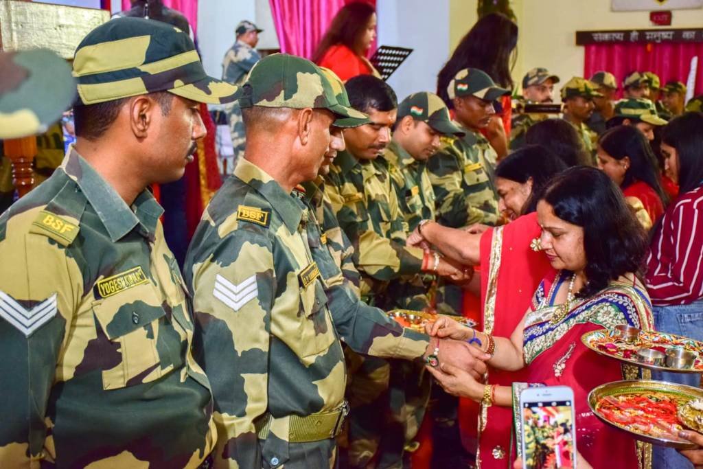 The BSF Meghalaya Frontier in collaboration with Maarvadi Sammellan Mahila Samiti, Shillong celebrated Raksha Bandhan at the international border and the BSF camp Mawpat.