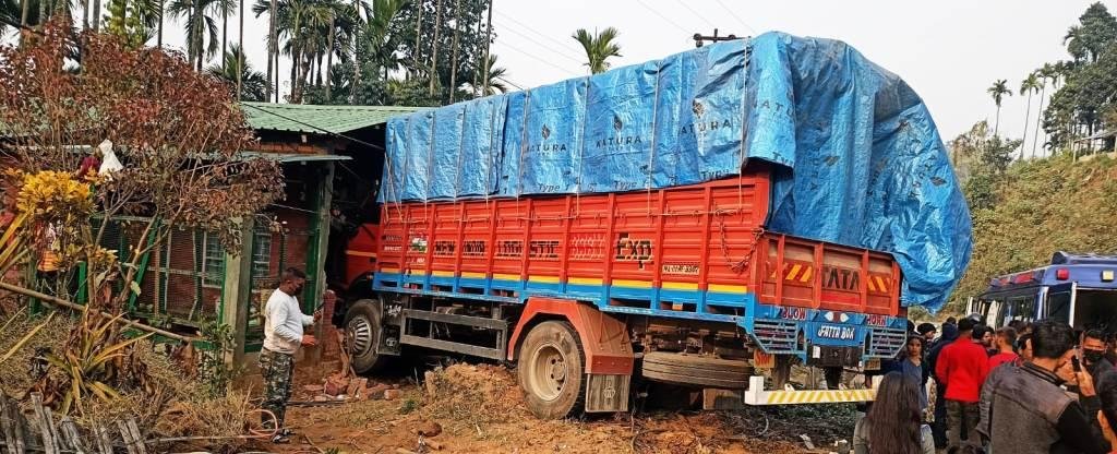 The vehicle was proceeding towards Guwahati from Shillong when, at high speed, the driver lost control and veered off the road and into the house of one Rangparkhat Kharmalki.