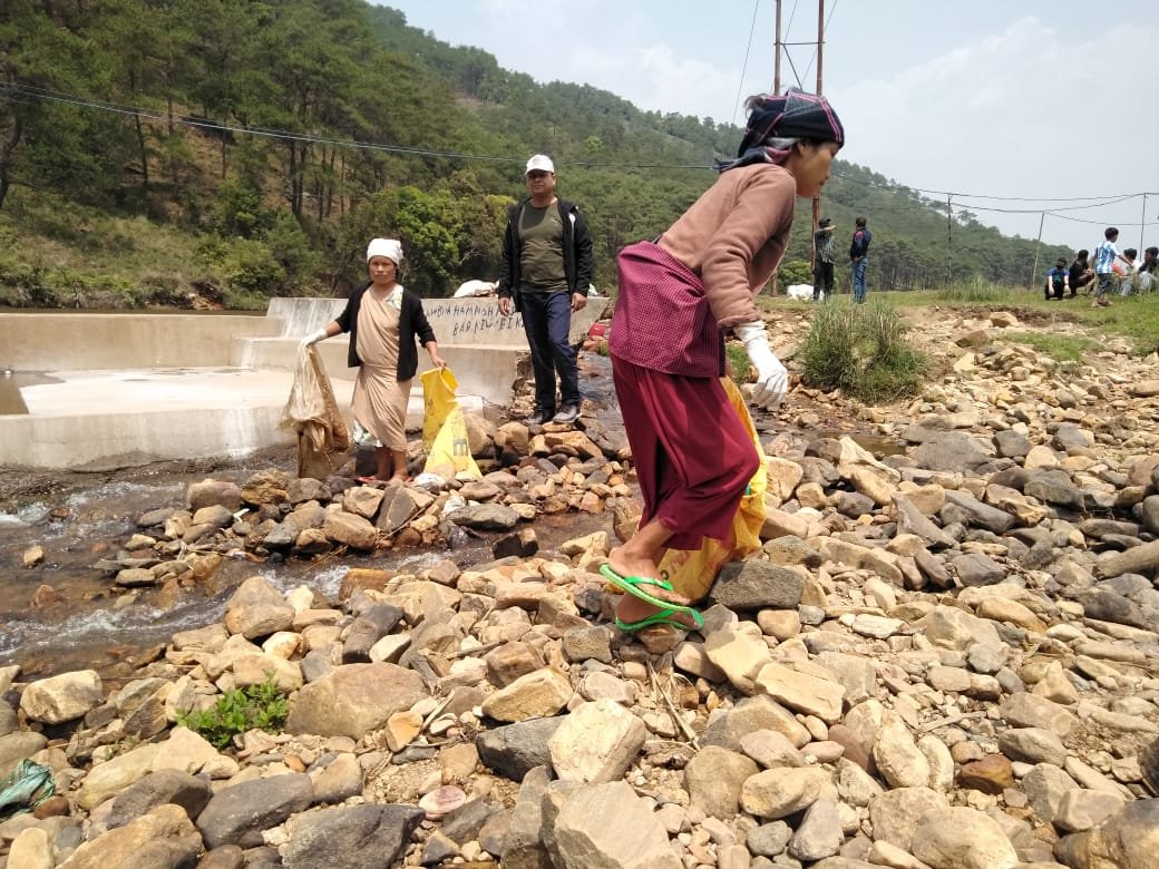 Residents of Jowai today joined hands to clean River Myntdu at a mass cleaning drive organised by the Synjuk Ki Waheh Chnong. Photo HP