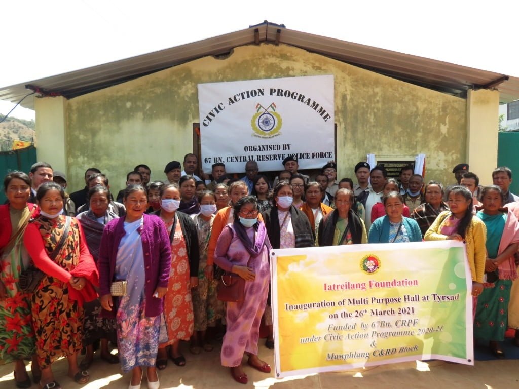 As part of its civic action programme, the 67th Battalion of the Central Reserve Police Force (CRPF), in collaboration with Iatreilang Foundation, reconstructed a community hall in Tyrsad, East Khasi Hills, and dedicated the renovated structure today.
