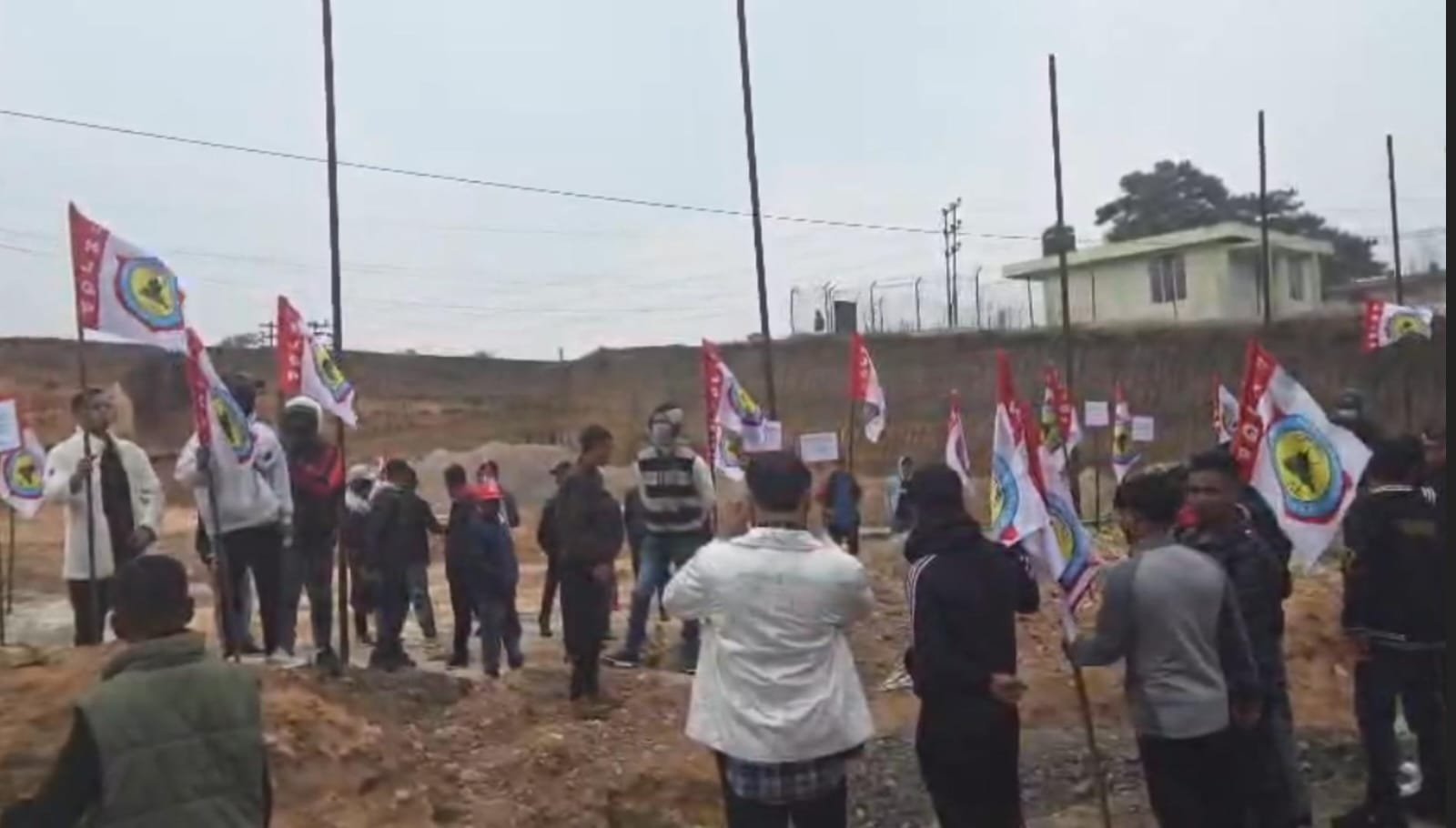 The FKJGP and the village heads together voiced their protest during an inspection by officials from the Urban Affairs Department, district administration, Ashok Auto Service (Anjalee Petrol Pump), and officials from the National Highways and Infrastructure Development Corporation Limited (NHIDCL).