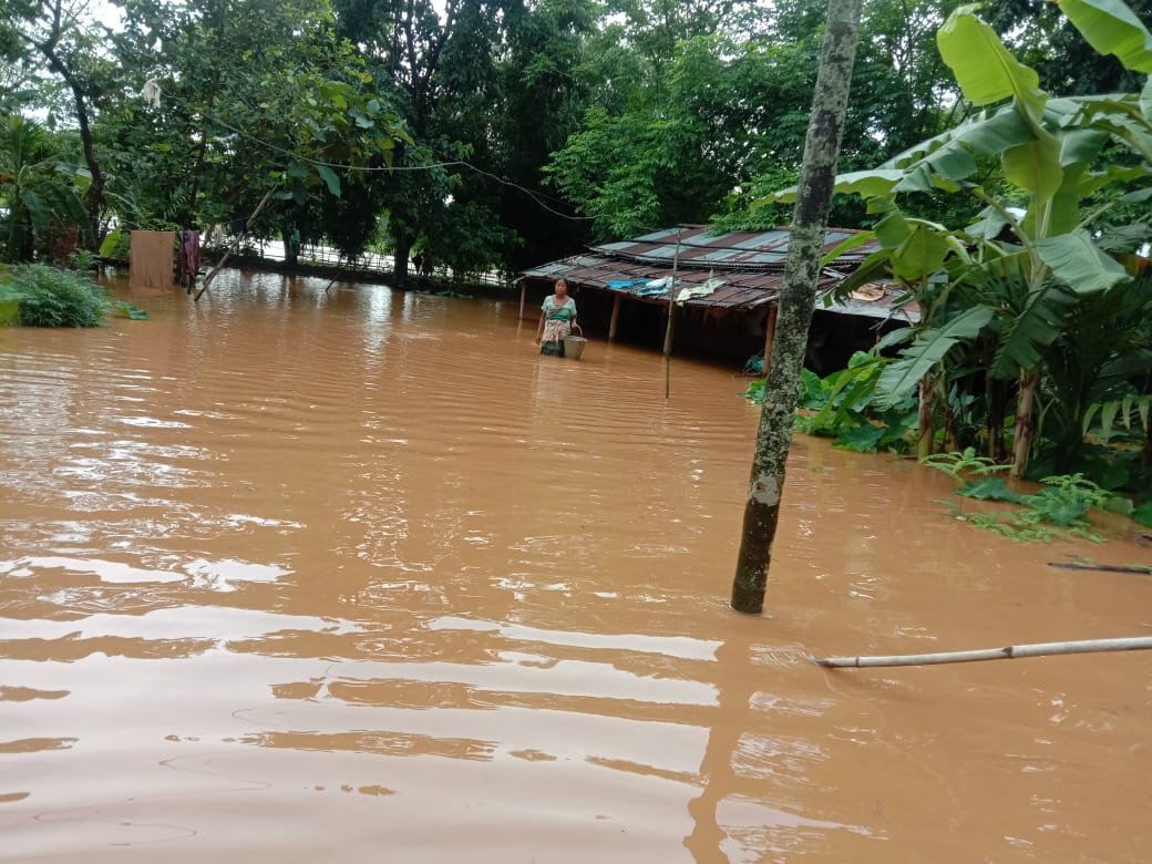 After a day of torrential rains yesterday that swept the entire Garo Hills and parts of Assam, the border town of Tikrikilla as well as areas adjoining it came under flood waters even as many scrambled to find shelter from the rising waters.