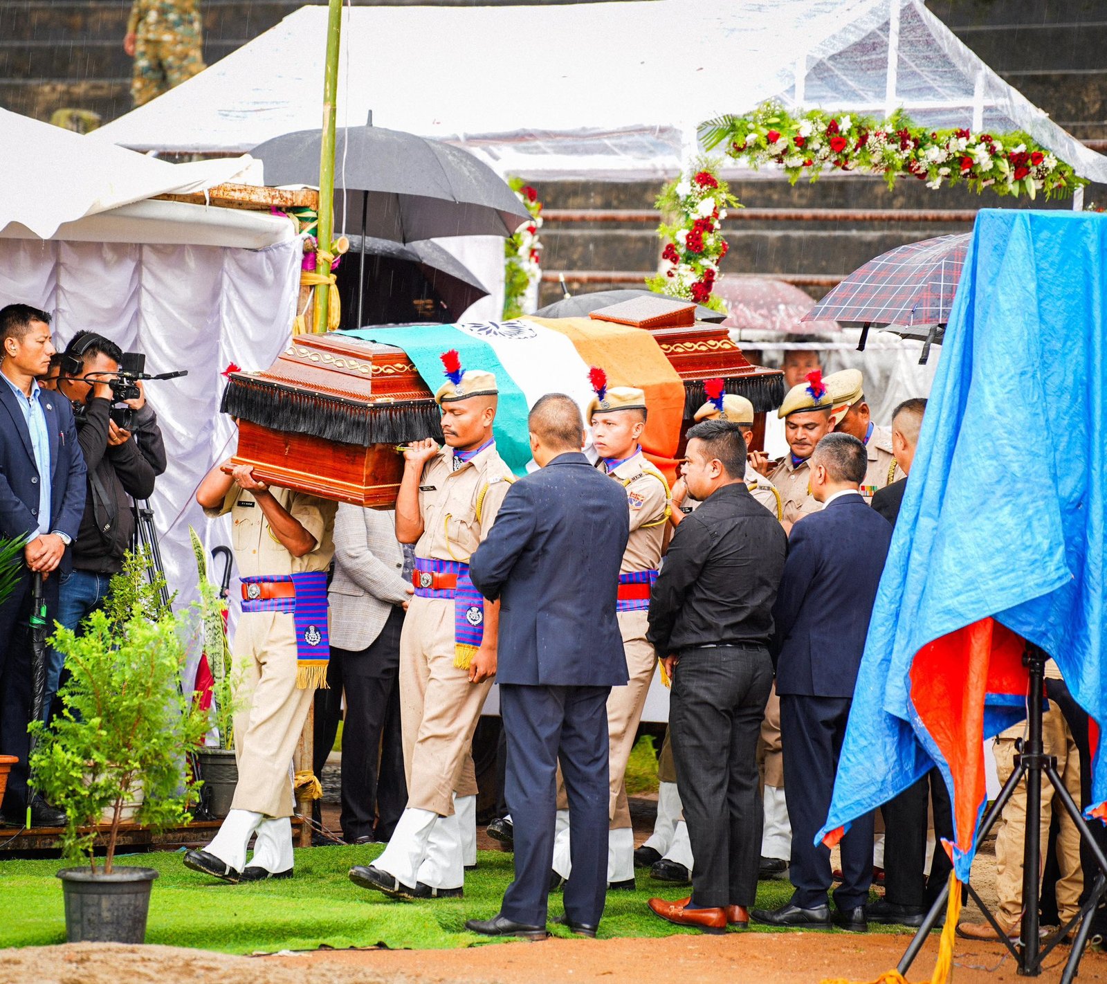 The government had declared a three-day state mourning period from September 13. As per government directions, State funeral was given to the former Chief Minister at Students’ Field in Jaiaw.