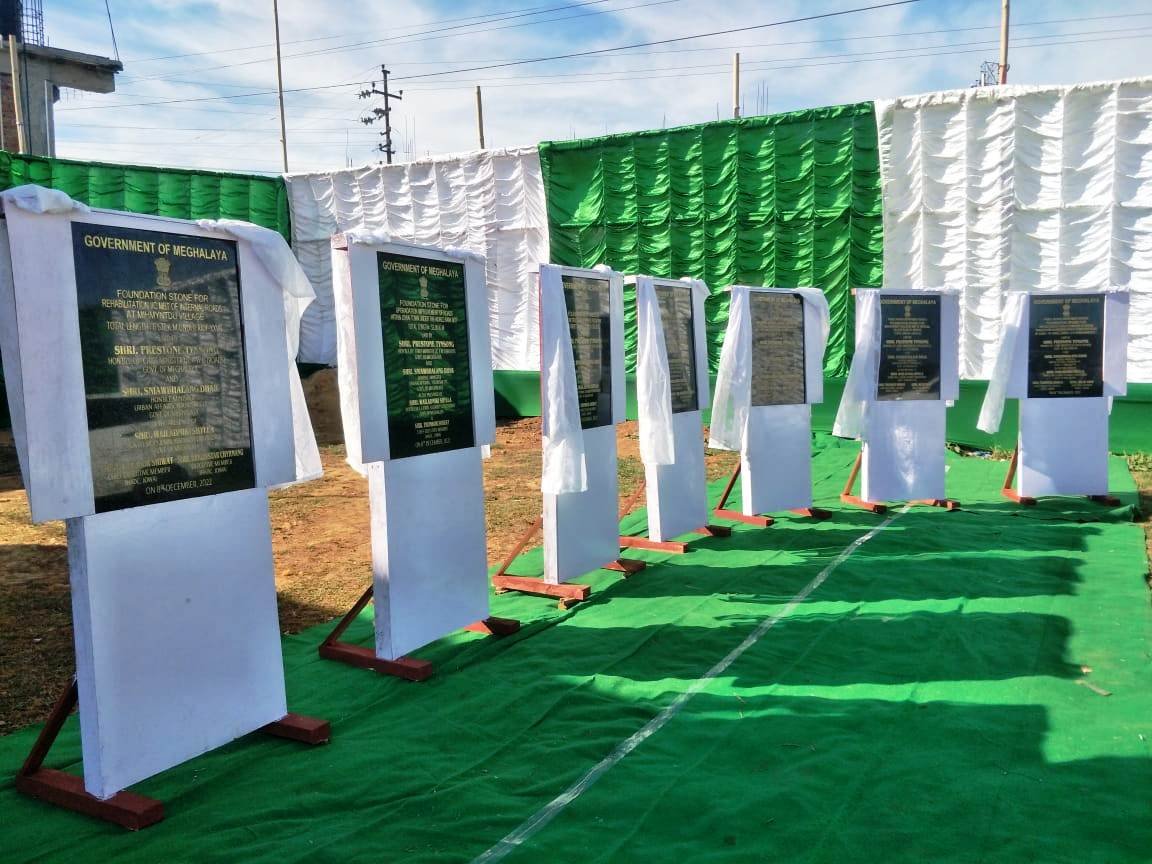 Foundations stone plaques for construction and renovation of roads in and around Jowai in West Jaiñtia Hills district were today unveiled at a function held at Madan Mihmyntdu by Deputy Chief Minister in charge PWD, Prestone Tynsong.