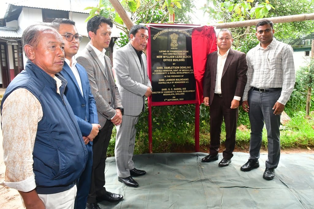 C&RD Minister, Hamletson Dohling today laid the foundation stone for the construction of New Mylliem C&RD Block office building at Block Headquarters, 5th Mile, Upper Shillong.