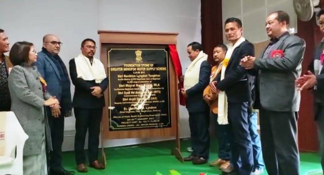 Public Health Engineering Minister Renikton Lyngdoh Tongkhar today unveiled the foundation stone for the implementation of the central government’s Jal Jeevan Mission water supply project under the Nongpoh Greater Water Supply Scheme today.