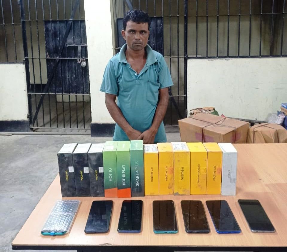 West Garo Hills police arrested one Assam resident, Jamal Sheikh, yesterday after he was caught with 19 mobile phones, accessories and cash that he had stolen from a shop in Hallidayganj.