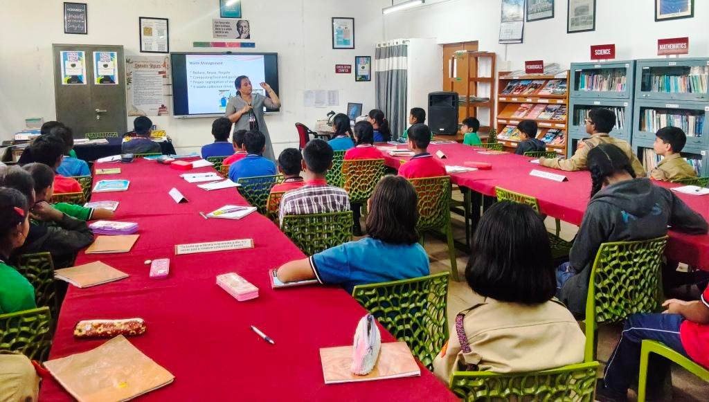 Students were taught about separating biodegradable and non-biodegradable waste and e-waste collection.