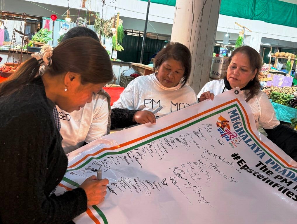 Shillong, Mar 2: The Meghalaya Pradesh Mahila Congress today held a signature campaign in Shillong City to express deep concern over the alleged involvement of certain Indian parliamentarians in the Epstein files.