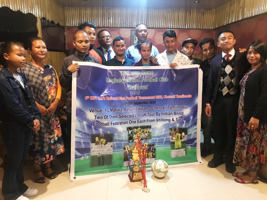 Members of the Meghalaya blind football team, which won the National Blind Football Tournament for the third time on Tuesday, were felicitated on their return to the state here today.