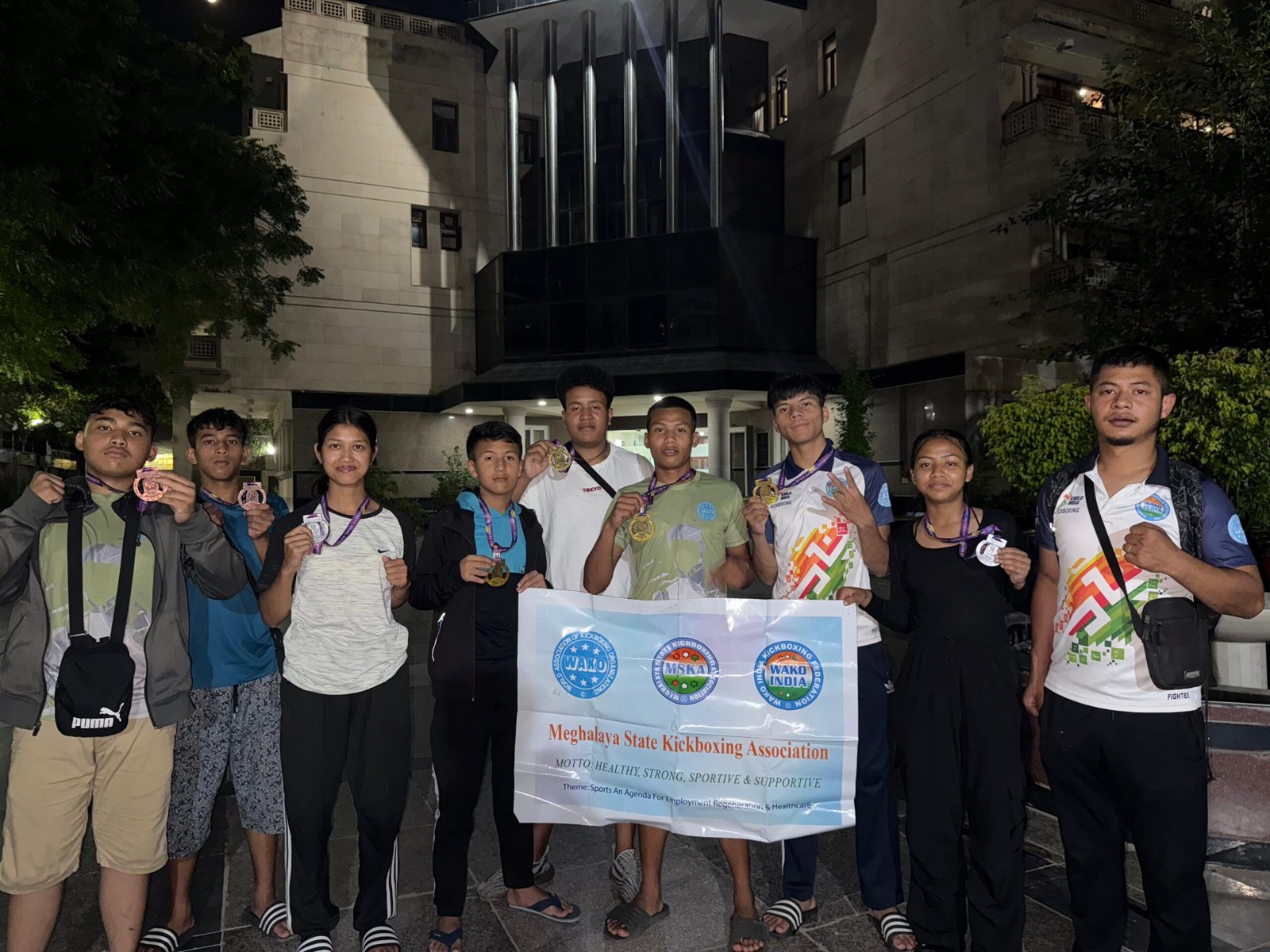 The Meghalaya contingent was led by coach Nathaniel P Kurkalang, an international kickboxer in his own right.