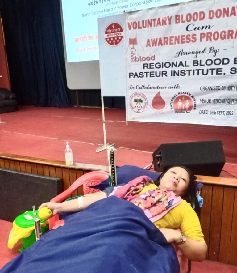 A blood donation camp under Azadi Ka Amrit Mahotsav was organised by NEEPCO today in collaboration with the Regional Blood Bank, Pasteur Institute.