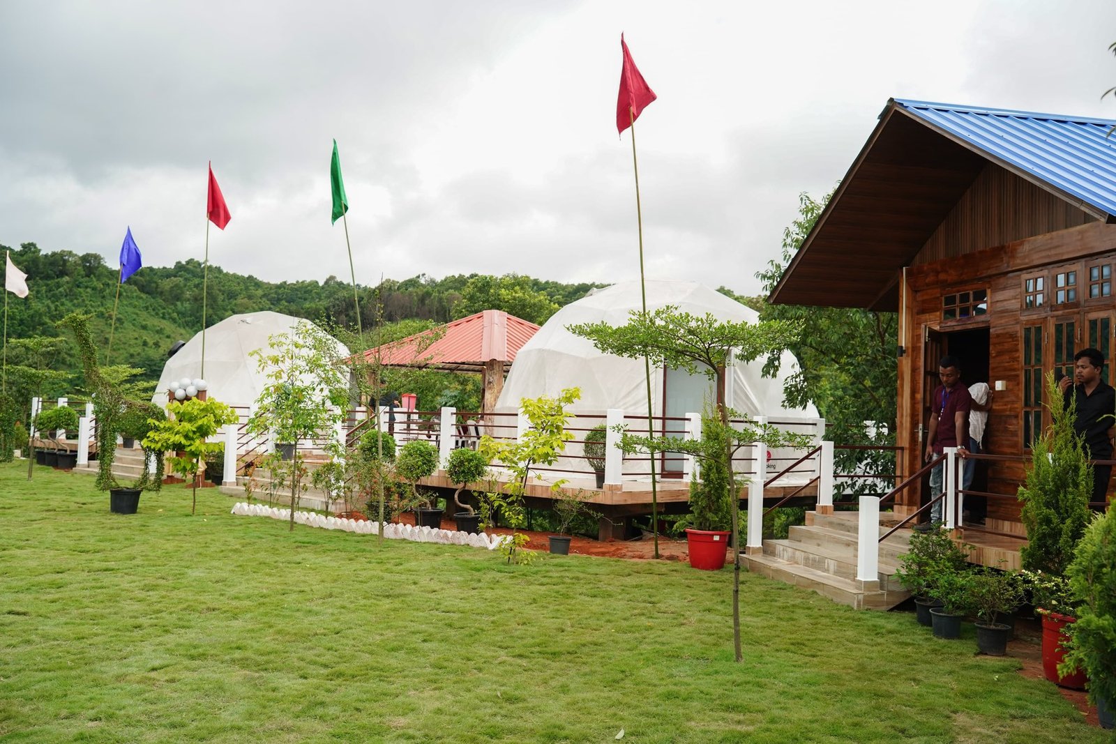 Under the sustainable eco-tourism and community-led development project, the glamping site was set up in a 21.48-hectare land scarred by unsustainable practices. Poised to be known as the state’s eco-tourism destination, the site features traditional Garo-style cabins and eco-friendly PVC dome tents.