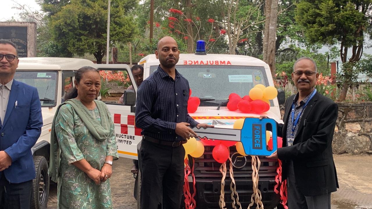 The ambulance was formally flagged off by Ri-Bhoi Deputy Commissioner Abhilash Baranwal in the presence of Additional Deputy Commissioner Jonathan Shylla, District Medical & Health Officer Dr. A.R. Marak, NHIDCL General Manager (P) Kunal Barua, and other officials.