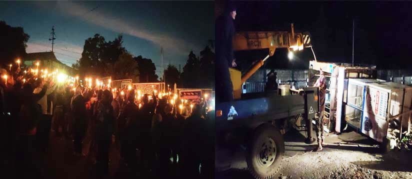 Pressure groups organised a sit-in followed by candlelight vigil at the Shillong Civil Hospital junction to show their condemnation and remember the dead of Tuesday’s Mukroh Massacre.