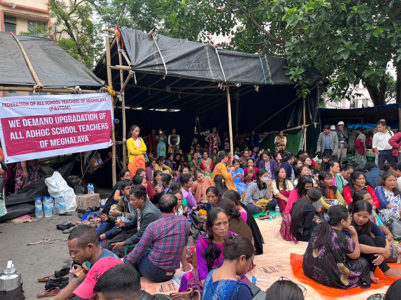 The teachers this week launched an indefinite, round-the-clock protest in Shillong and Tura. Ad hoc teachers are striking for higher salaries and a guaranteed 5 per cent annual hike.