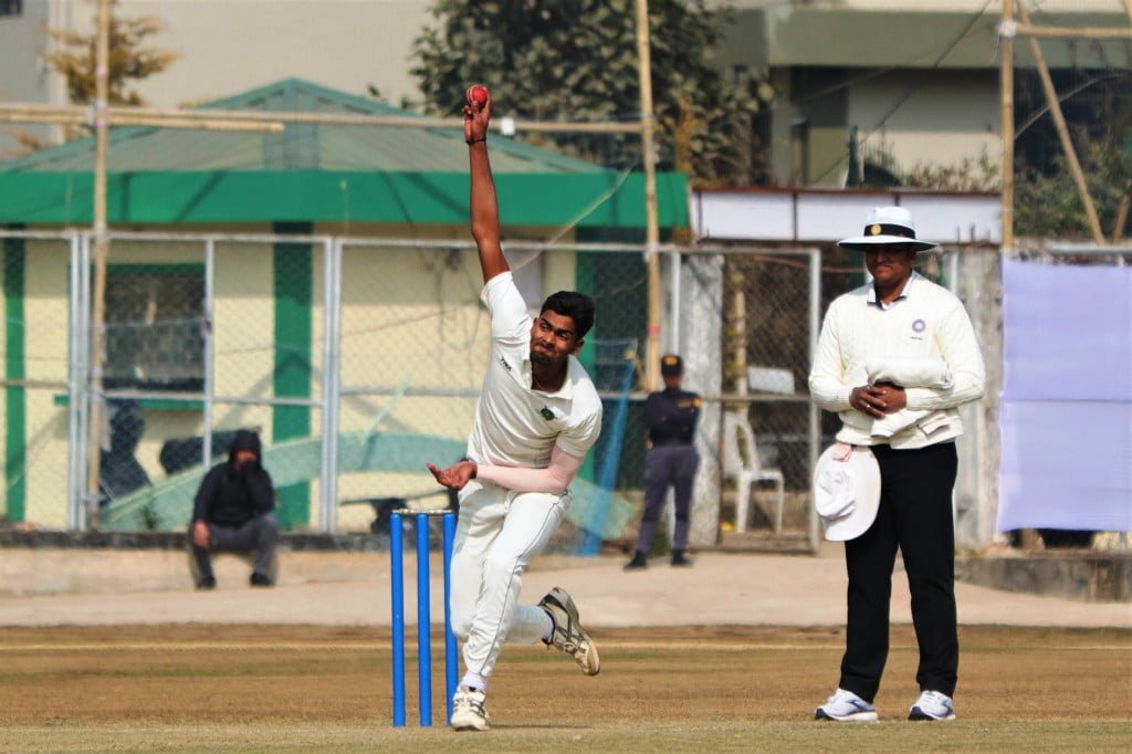 Meghalaya's Abhishek Kumar bowling.