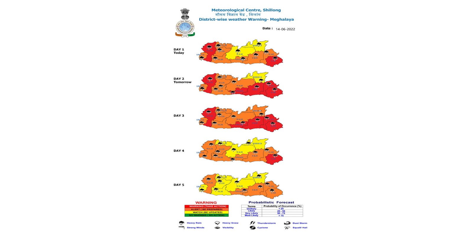 Owing to the heavy rain forecasts, the India Meteorological Department (IMD) has placed a red alert over Meghalaya and Assam on from June 15-16., so as to urge the locals to “be prepared” for the inclement weather.