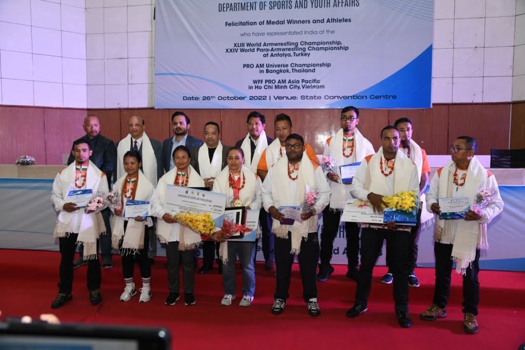 Nearly Rs 12.5 lakh was distributed to the athletes who were present at the function today. Gold medallist armwrestlers Margaret Pathaw was awarded Rs 5 lakh alone.