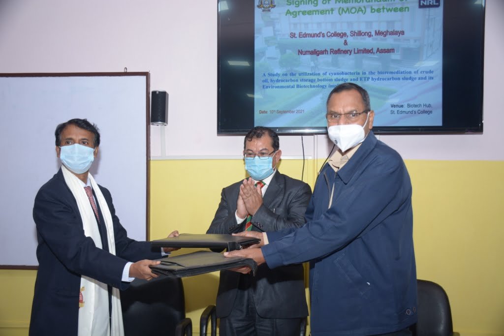 A memorandum of agreement (MoA) was signed between St. Edmund’s College, Shillong with Numaligarh Refinery Limited (NRL) today for a research project on oil sludge.