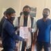 Chief Minister Conrad Sangma receives the Swarnim Vijay Mashaal at Polo Ground in Shillong on Thursday. Photo HP