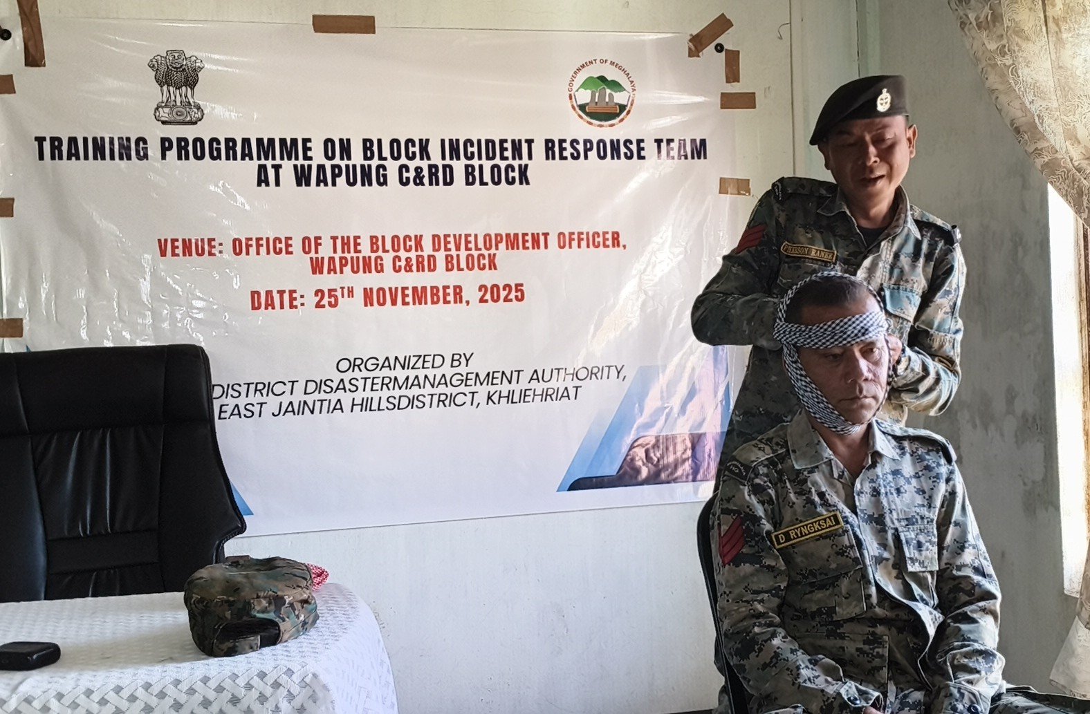 Khliehriat, Nov 25: In an effort to strengthen disaster preparedness and enhance the capacity of block-level officials and frontline responders in effectively managing emergencies, a training programme on Block Incident Response Team (IRT) was held for officials of Wapung and Lumshnong C&RD Blocks.