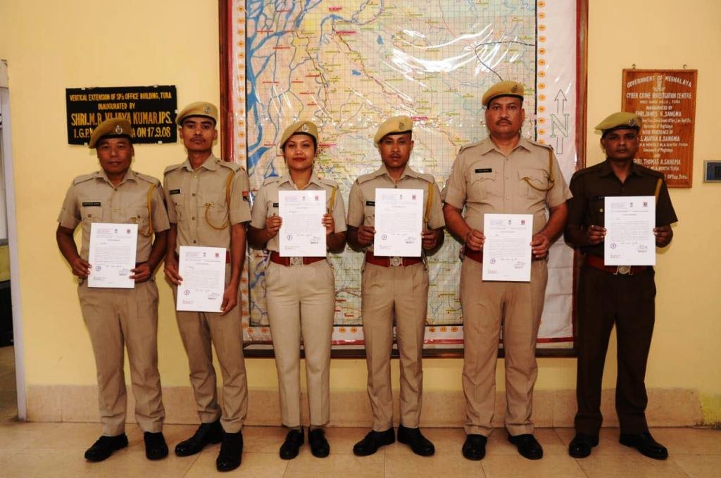 Policemen involved in the investigation pose with their appreciation certificates handed to them by West Garo Hill Superintendent of Police Vivekanand Singh Rathore on Monday.
