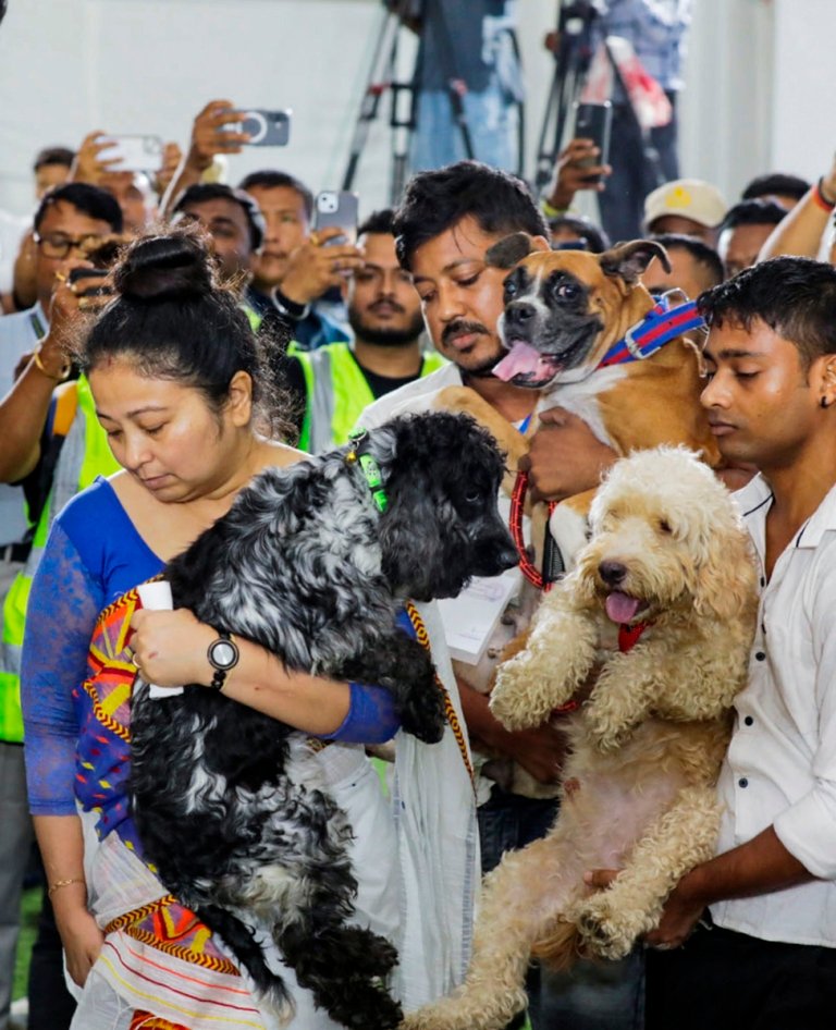 Guwahati, Sep 22: As lakhs of fans paid their respects to popular Assam singer Zubeen Garg, his four canine companions also visited their master for the last time on Monday at Sarusajai stadium in Guwahati where his mortal remains have been kept for public homage.